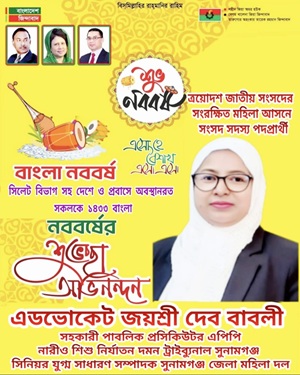 দেশবাসীকে নববর্ষের শুভেচ্ছা জানিয়েছেন অ্যাডভোকেট জয়শ্রী দেব।